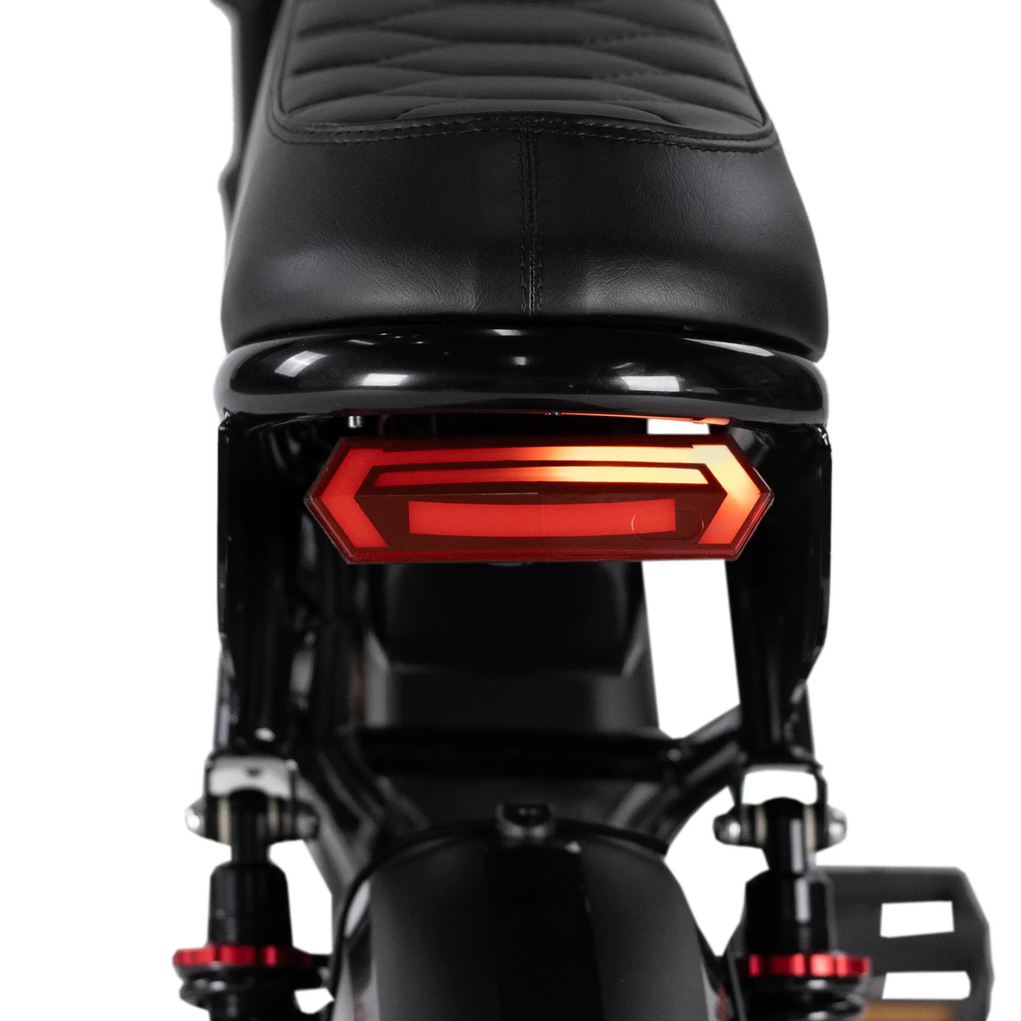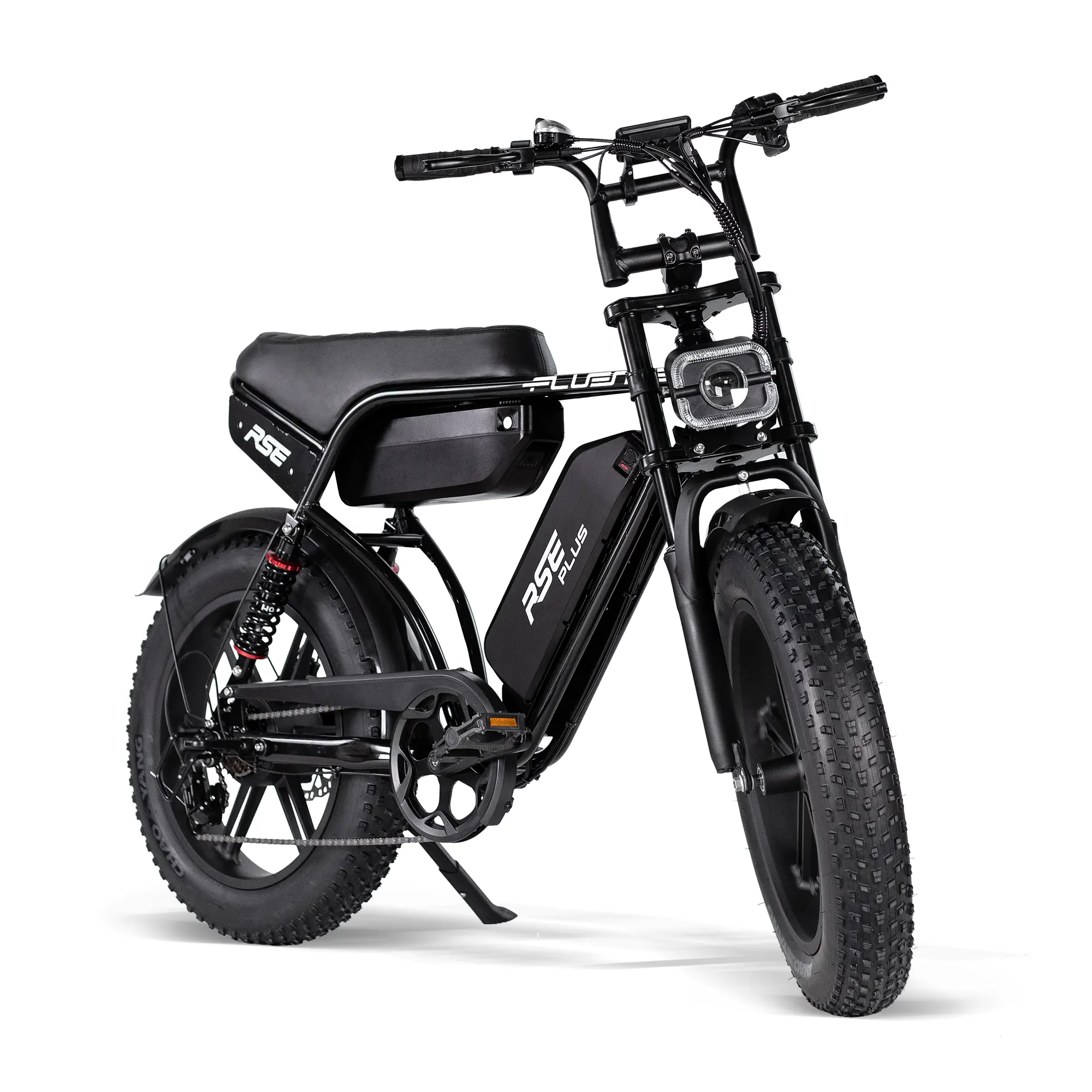 The RSE Plus features not only front suspension, but also dual rear suspension and a dual battery. This provides double the comfort and double the range, so you can get anywhere worry-free. Equipped as standard with passenger footrests and an extra-spacious seat, but also available with an additional rear rack with a seat.